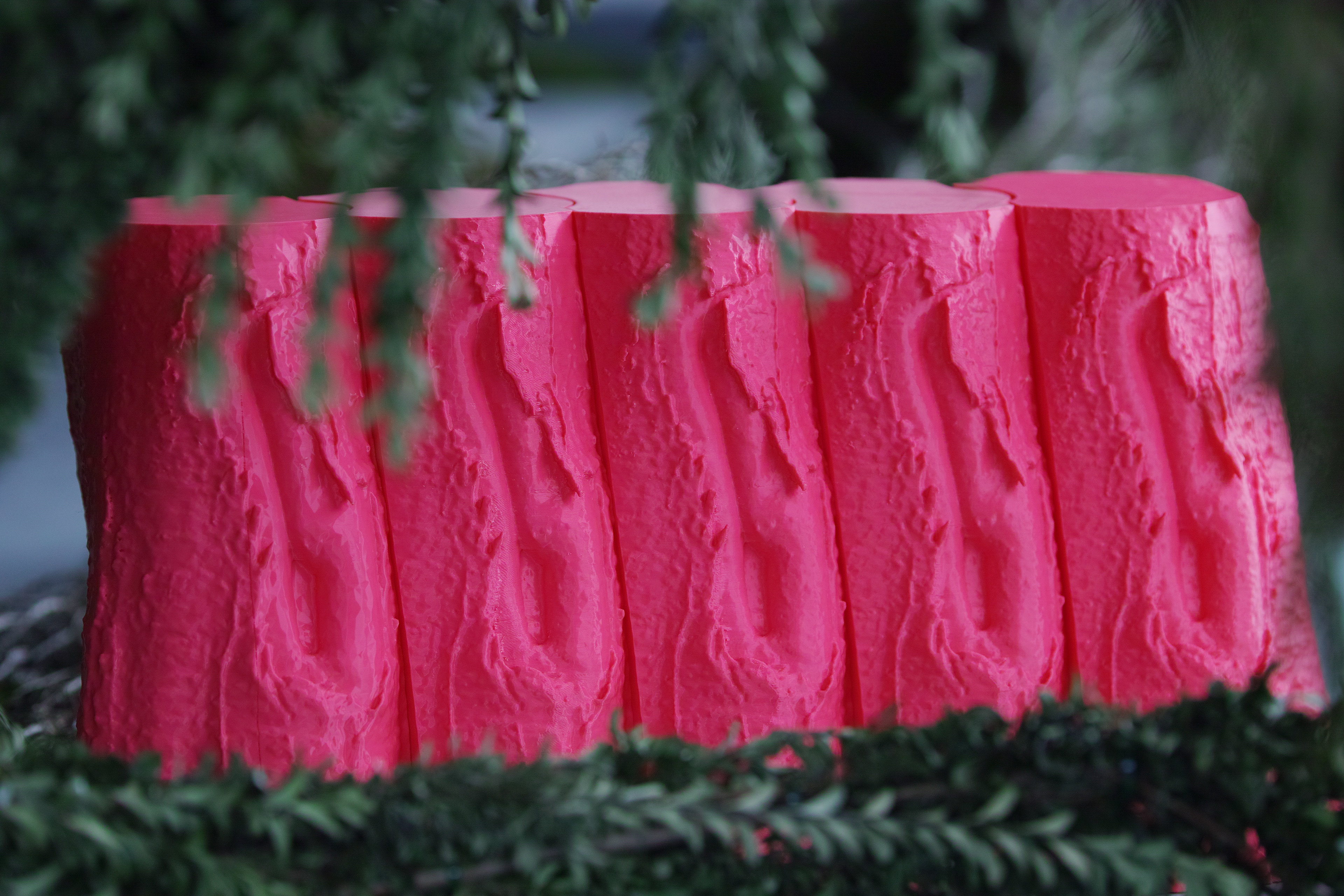 We seek to possess nature. As we have become separated from primordial nature, we have pursued it with an instinct from the past. Beyond the direct acts of tending gardens and growing plants in pots, decorations and patterns that mimic nature hint at this long-standing desire. Captured Nature utilizes 3D scanning technology to capture nature in a different way. While a camera records a two-dimensional moment in time, a 3D scanner can document natural phenomena in three dimensions. These scanned forms are then reproduced through 3D printing technology, bringing them closer to our daily lives. Although nature recreated through 3D technology may appear to be made of highly artificial materials, it is, in fact, crafted from natural-origin materials, illustrating the cycle between nature and humanity.